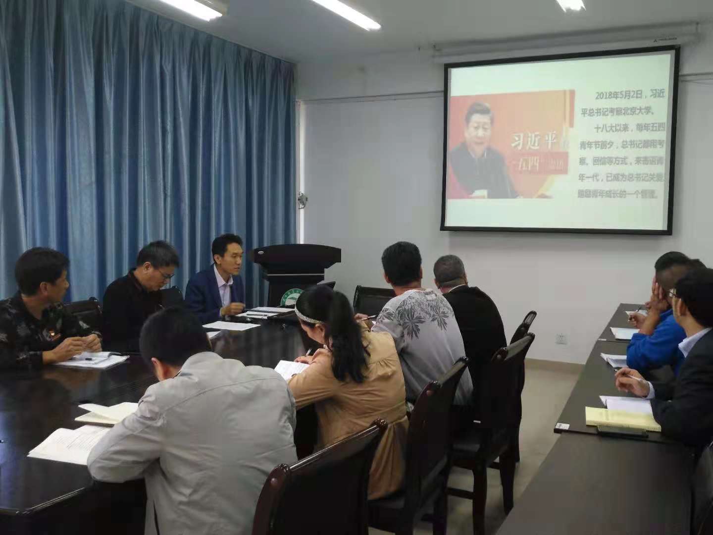 2018年11月6日上午,学院机关党总支在行政楼五楼会议室召开“习近平新时代中国特色社会主义思想”专题党课学习会。学院机关党总支委员刘林同志作“习近平新时代中国特色社会主义思想”专题党课学习辅导,通过专题党课学习,机关全体党员切实体会到习近平总书记对青年大学生的满满关怀和殷切期望,深刻理解“青年兴则国家兴,青年强则国家强”这句话的丰富内涵,与会党员表示一定不负习近平总书记的重托,勇于担当,教书育人。会后,机关党总支党员参加了学习贯彻习近平新时代中国特色社会主义思想和党的十九大精神应知应会考试。