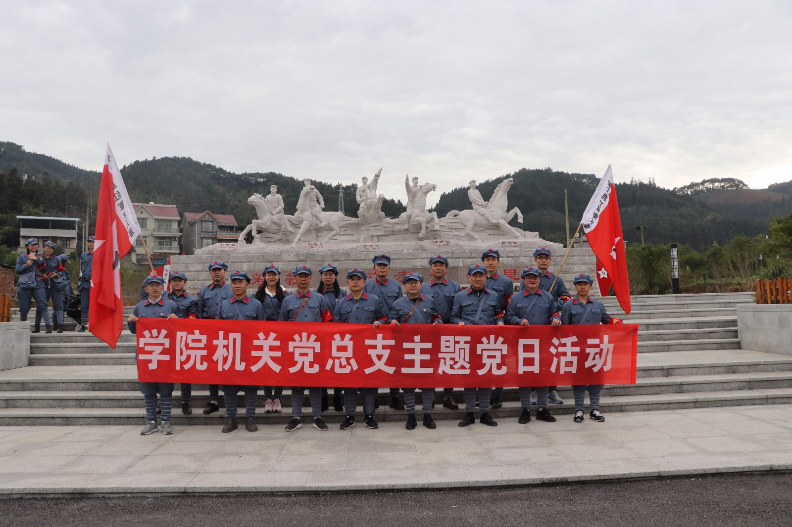 2018年12月19日下午,学院机关党总支、信息系和食品系联合党总支带领两个总支共32名党员,前往闽北革命的红色热土——顺昌洋口,开展革命传统教育主题党日活动。两个总支党员穿着红军军服重走了一段东征之路,参观了中国工农红军东方军政治部旧址、苏维埃洋口政府旧址、毛泽民故居、彭德怀办公旧址及吴公太尉庙(项南抗日剧演出地)等红色特色项目,并在项南抗日剧演出地旧址高唱红色革命歌曲(没有共产党就没有新中国、走进新时代、歌唱祖国),在彭德怀办公旧址重温一次入党誓词。通过实地参观学习,使全体党员重温了革命历史、缅怀了革命先烈,深刻感受到革命的艰辛和伟大,深刻认识到我们党所经受的曲折和磨难,党员们纷纷表示要更加珍惜今天的幸福生活,要更加坚定理想信念,不忘入党初心,牢记党员使命,增强四个意识,坚定四个自信,在学院各项中心工作中勇于担当,发挥党员先锋模范作用,努力践行“新思想、新担当、新作为”。