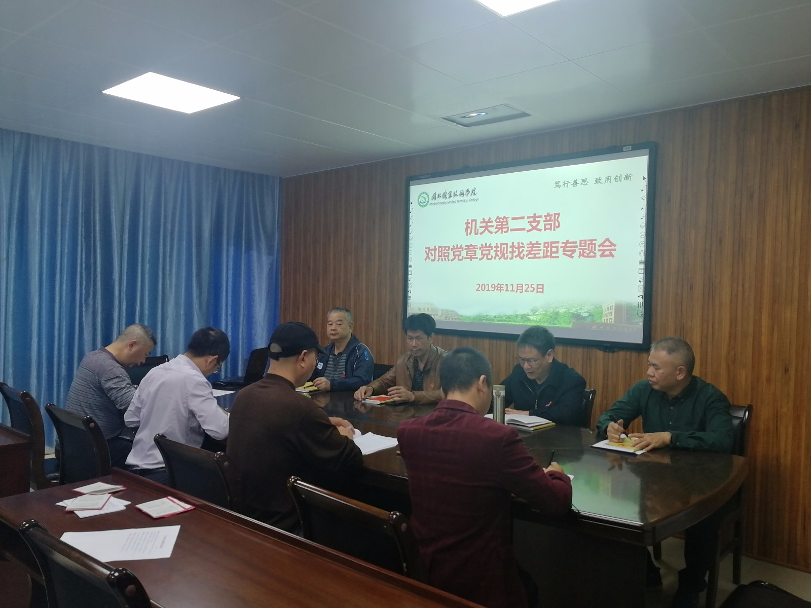 2019年11月25日下午,机关党总支第二党支部召开对照党章党规找差距专题会,机关第二支部书记吴兴旺主持会议,支部全体党员参加了会议。