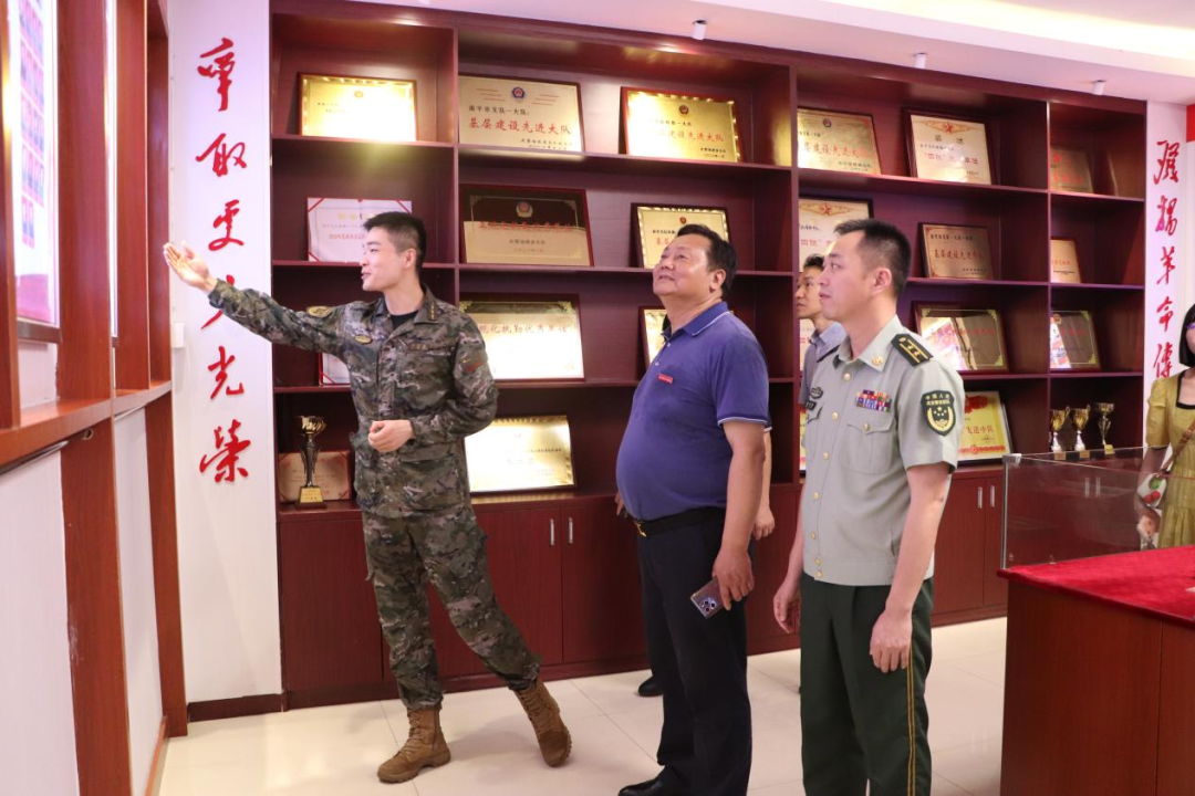 谢友平一行参观了部队建设史馆、官兵们的生活区及训练场所,感受军营文化氛围、增强爱国情怀、提高爱我国防意识。