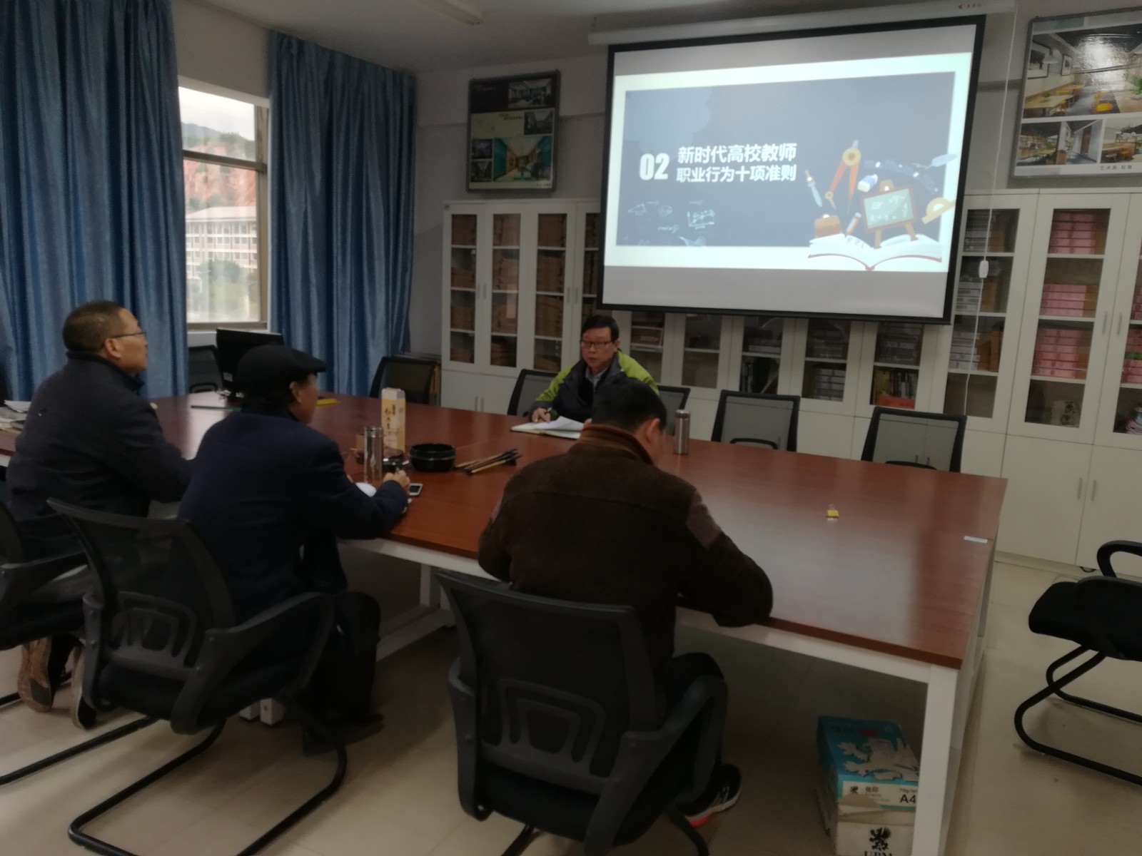 12月12日上午,设计系和管理系联合党总支召开理论中心组学习会,集体学习了习近平总书记关于高校教师队伍建设的重要指示要求和教育部《新时代高校教师职业行为十项准则》(下称《准则》),研究学习贯彻意见。