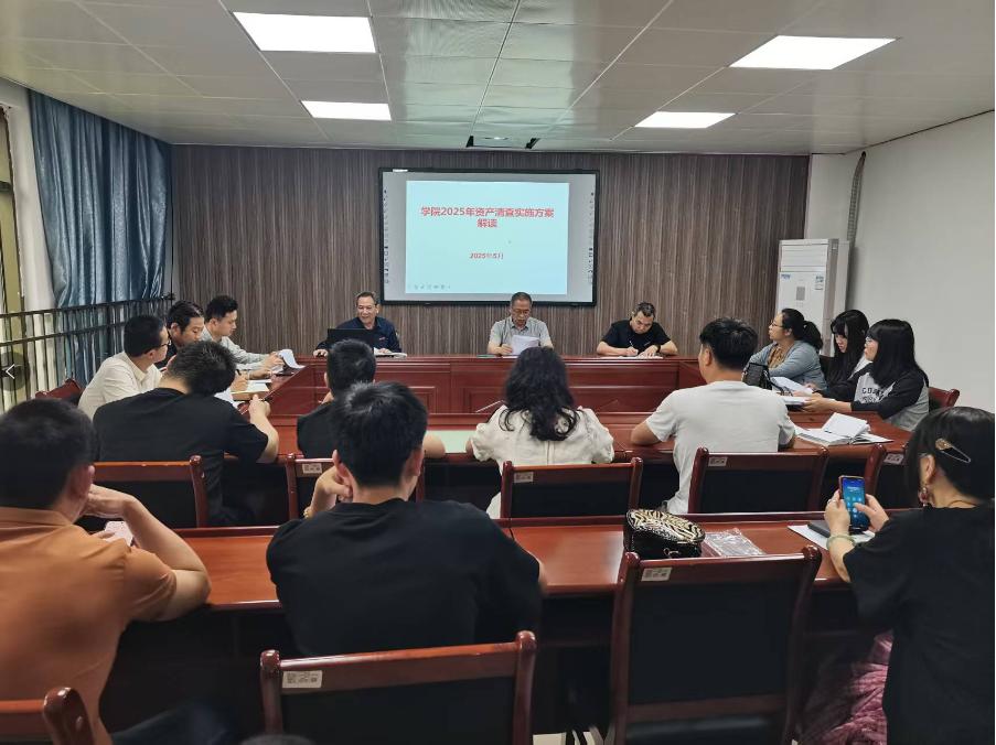 后勤处副处长吴兴旺对本次资产清查的工作内容、工作步骤、工作要求等进行详细解读,并对学院各部门就如何组织开展好2025年资产清查工作进行安排部署。