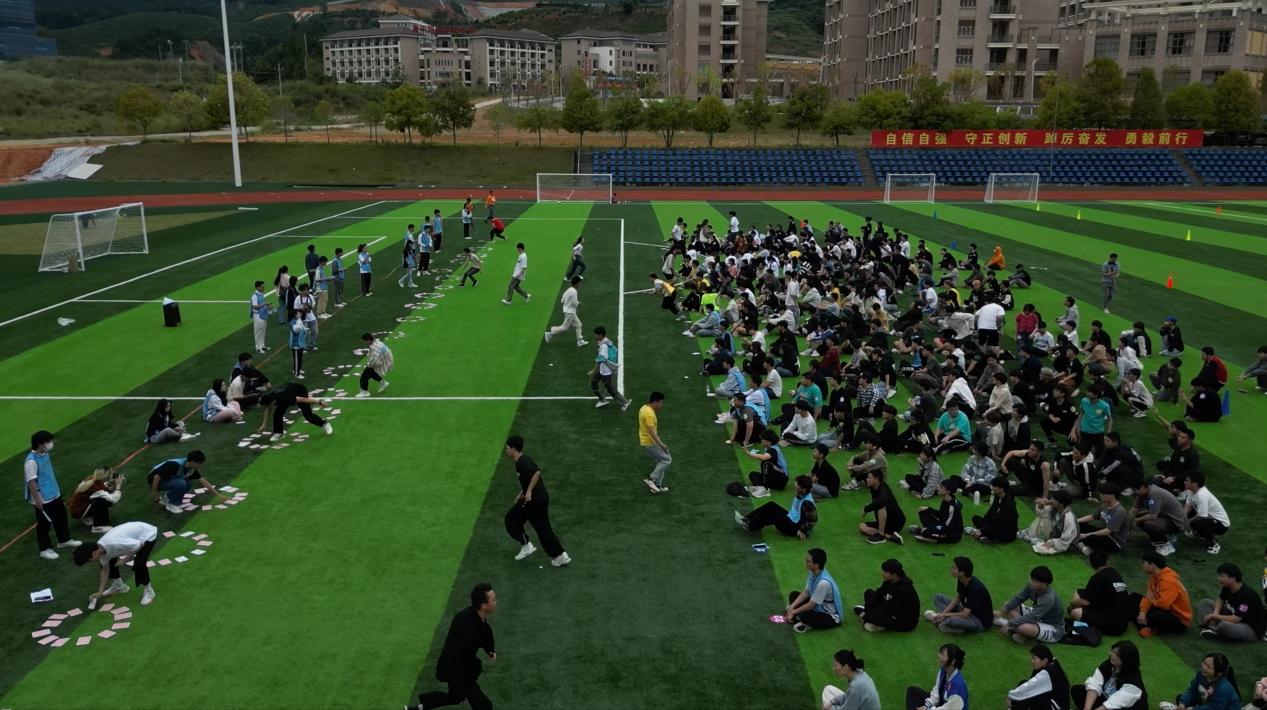 为学习贯彻党的二十大精神,贯彻落实省委“深学争优、敢为争先、实干争效”的要求,落实“三全育人”,进一步增强学生的综合素质,促进学生身心健康、磨练团体意识、增强团结能力、助力健康中国建设,2023年4月26日下午,由信息系主办、福州安博榕信息科技有限公司承办的以“强基铸魂”为主题素质拓展活动在学院田径场举行,党委委员、组织部(统战部)部长蔡军、信息系党总支书记鞠建恩出席活动,此次活动参与学生达600余人,活动主要项目包括:团队破冰、激情节拍、同舟共济、摩斯密码、动力圈五个项目。