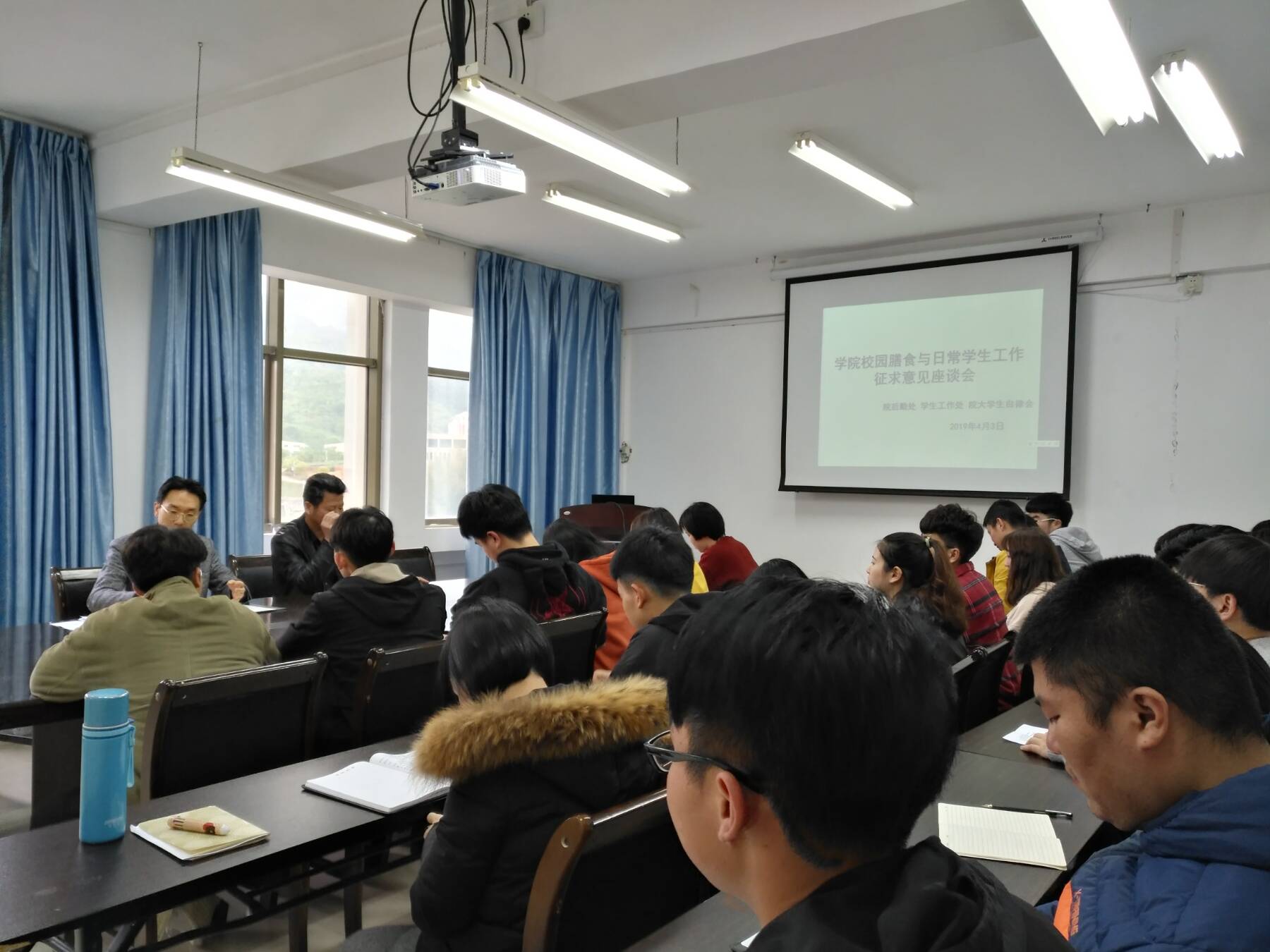 为促进学院学生工作发展,培养大学生主体意识,助力大学生“四自教育”工作,4月3日下午,由院学生工作处、院后勤处、院大学生自律会共同组织召开学生生活征求意见座谈会。