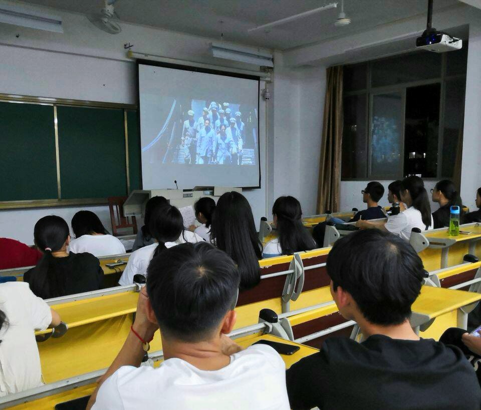 2019年5月15日晚,在教学楼301教室,学院“习近平新时代中国特色社会主义思想”大学生读书社全体成员观看了纪念红军长征胜利80周年影片《大会师》。思政部负责人邱海松老师到场组织指导。