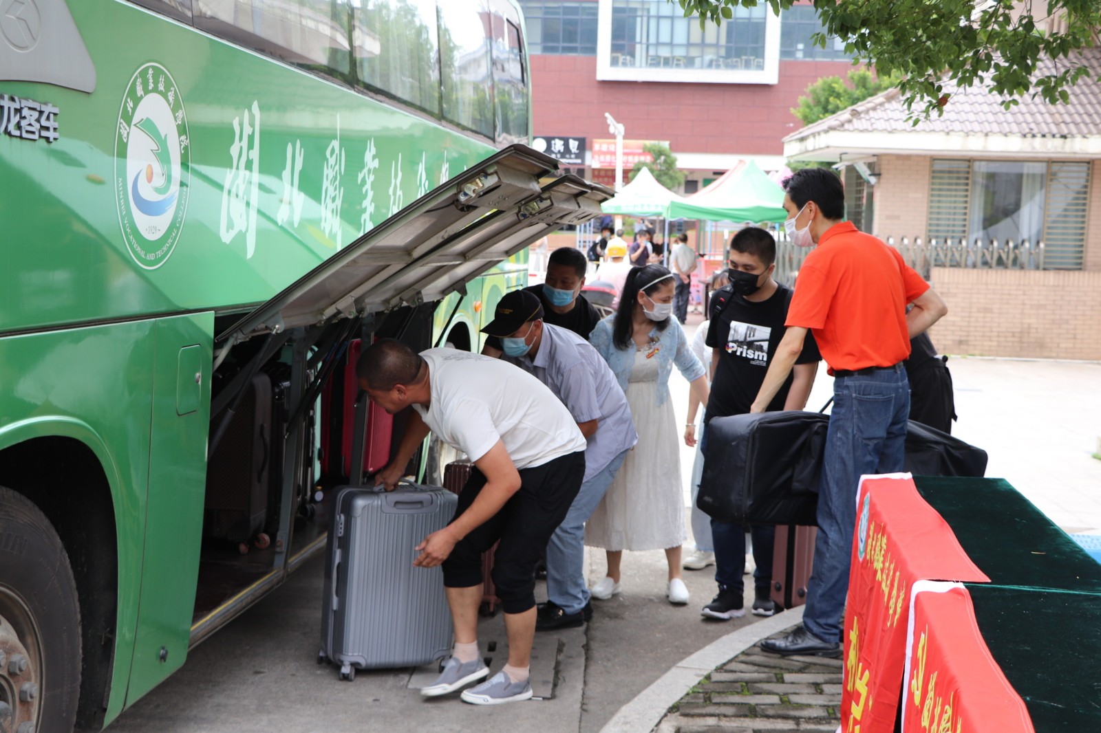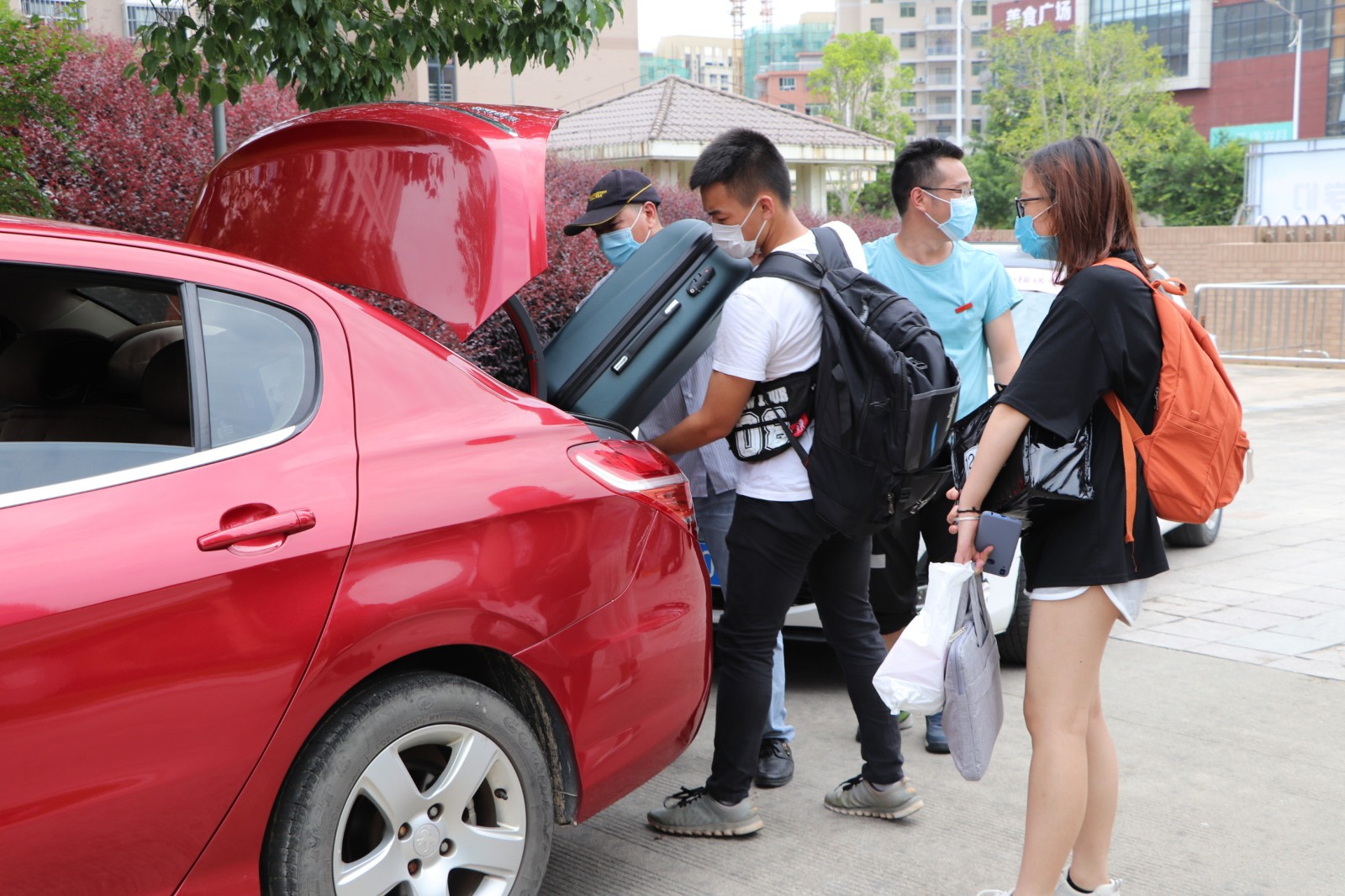 6月2日,是我校首批学生春季返校复学日。为积极响应学院党委号召,全力保障返校复学工作,学院机关党总支号召第一支部和第二支部,迅速组建了返校复学党员志愿服务队。为给返校的莘莘学子提供优质暖心服务,党员志愿者们组建了三个小分队,一队在校门口迎接、引导学生下车,帮助搬送行李到消毒处进行消毒。一队在体温检测门为同学们检测体温和进行防疫宣传。还有一队是爱心接送学生的车队。学校的大巴车,党员志愿者们的私家车,都纷纷加入了接送的队伍。车子有序的停放在校门口一侧的大道上,学生们一进校大门,就有党员志愿者们帮助搬行李,并引导坐上事先开好空调等候着的车子。党员志愿者们上午顶着烈日冒着炎热,下午又淋着暴雨,全天无休,从上午八点服务到晚上十点,为学生装行李,卸行李,搬行李,宣传防疫知识,嘘寒问暖。从校门口到宿舍,返校的同学们感受着学校的关怀爱护,心里充满了温暖和感动!