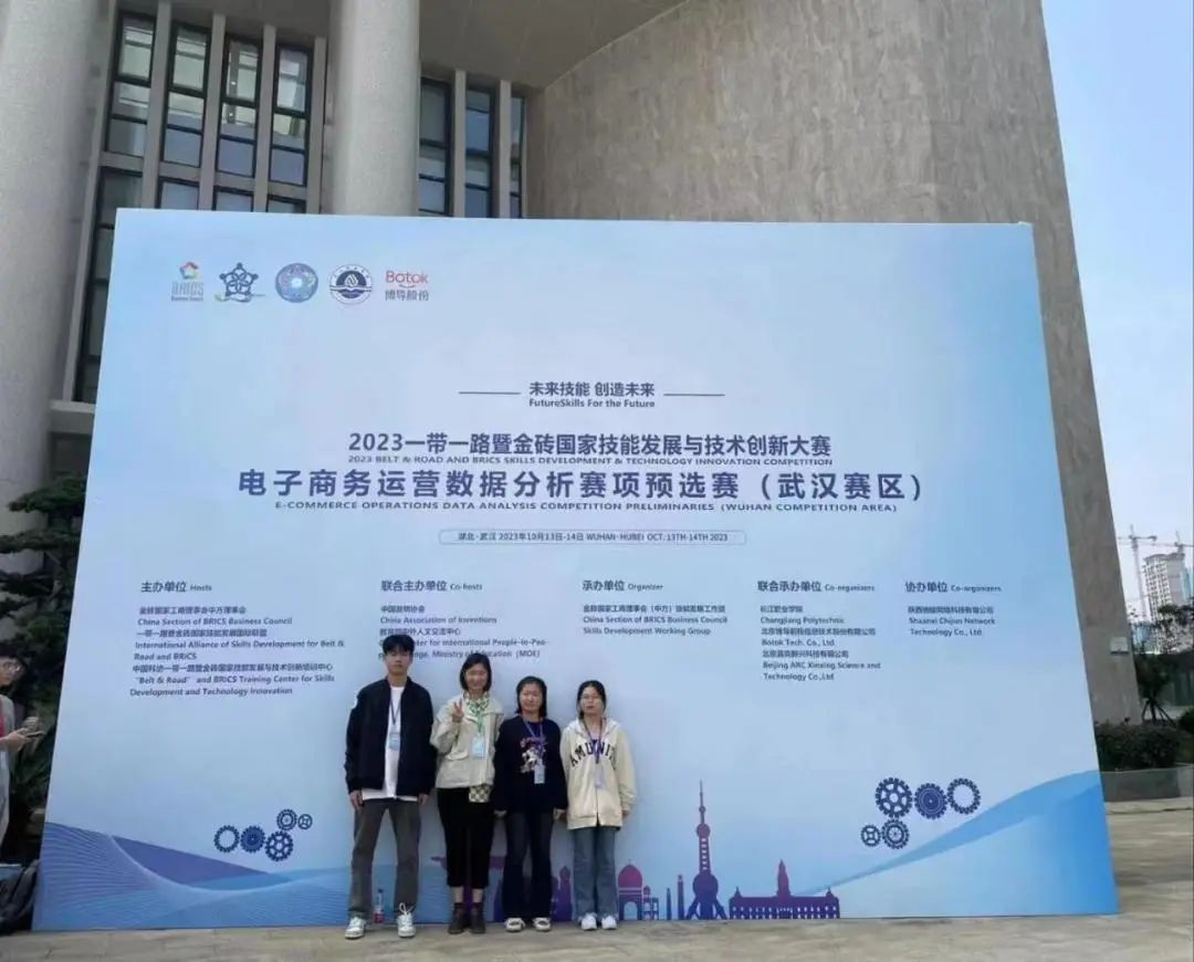 近日,2023一带一路暨金砖国家技能发展与技术创新大赛"电子商务运营数据分析"赛项预选赛(武汉赛区)圆满落幕,我院电子商务专业学生黎馨勇、曾丹、林雪婷在张梦君和邓红两位教师的悉心指导下,从浙江、江西、福建、广东、湖南、广西、海南、河南、湖北9个省份89支高职队伍中脱颖而出,获得一等奖并成功晋级全国总决赛。