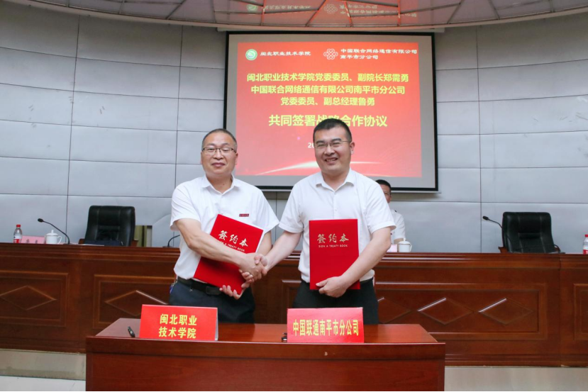 5月9日下午,8040威尼斯与中国联合网络通信有限公司南平市分公司战略合作签约暨揭牌仪式在学院行政楼一层报告厅举行。学院党委副书记、院长叶世森,党委委员、副院长郑需勇,中国联通南平市分公司党委书记、总经理董国亮,党委委员、副总经理鲁勇及双方相关部门负责人参加签约揭牌仪式,学院招生就业处负责人詹永珍主持仪式。