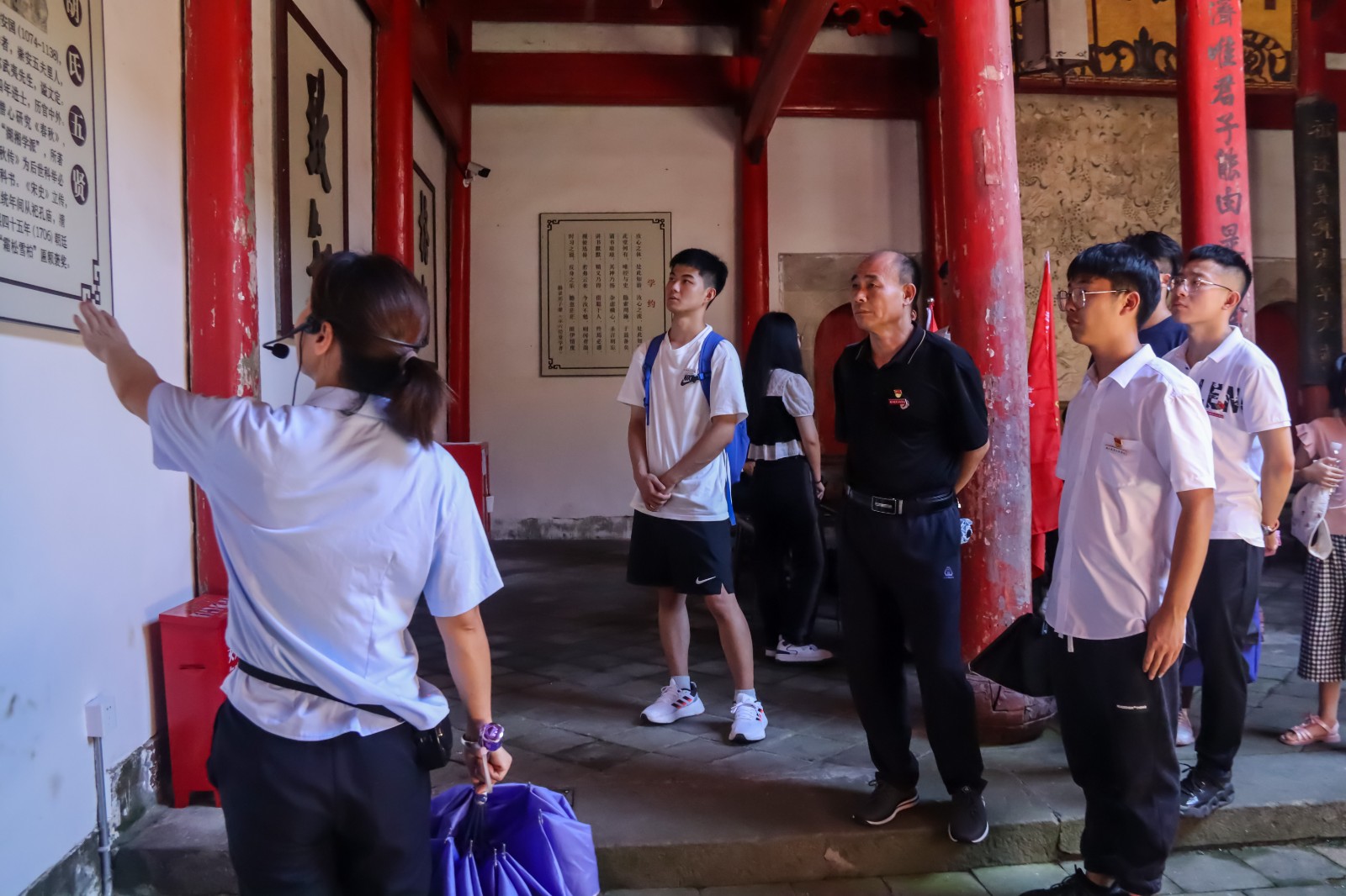 走访兴贤古街,瞻仰朱子文化。实践队第二站先后参观了兴贤书院、朱子故居等文化古迹。通过走访了解,调研学习,了解了武夷山五夫镇朱子文化的历史文脉。兴贤古街是五夫历史遗迹最为集中的地方,在这条充满历史气息的古街上留存着朱子学堂、刘氏家祠等历史建筑遗迹。除了书院等建筑遗迹外,五贤井、朱子求学路等颇具特色的历史景点也令同学们流连忘返。