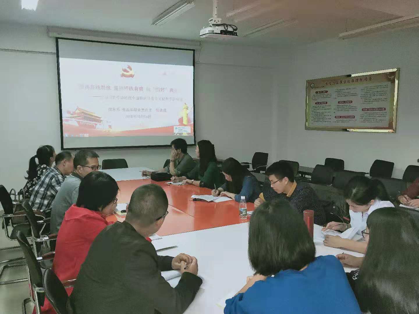 根据系党总支的工作部署,10月26日下午,系主任、党总支副书记张金良为全体党员上了一堂题为《坚持底线思维,坚持抓铁有痕,做“四好”教师》的专题党课。