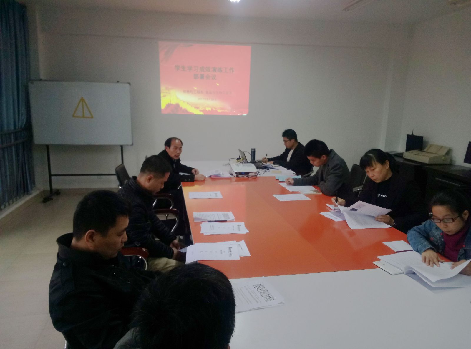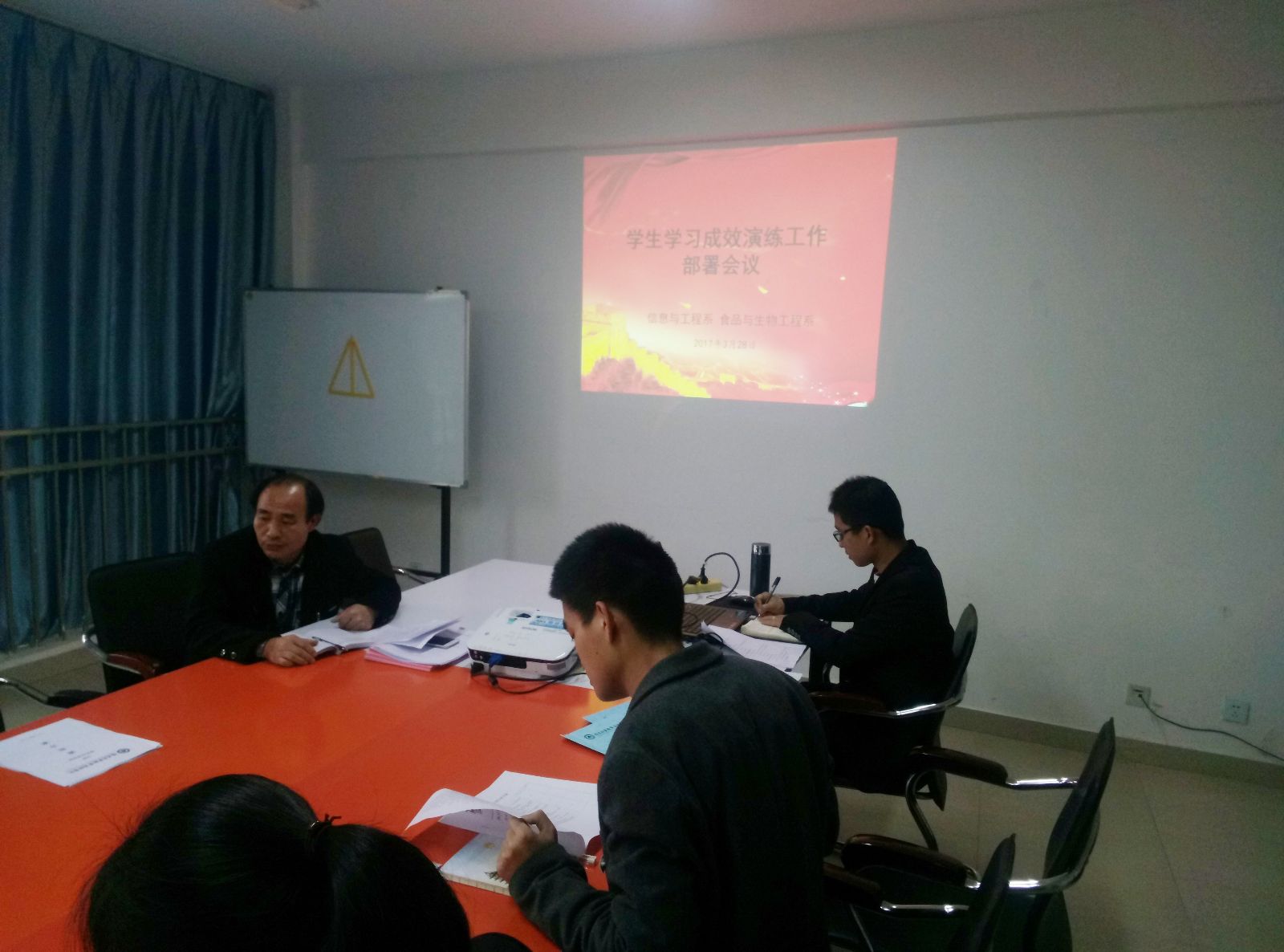 2017年3月28日下午,我系召开学生学习成效演练部署会议,系总支常务副书记郑启阶老师、系辅导员及各班班主任参加会议。