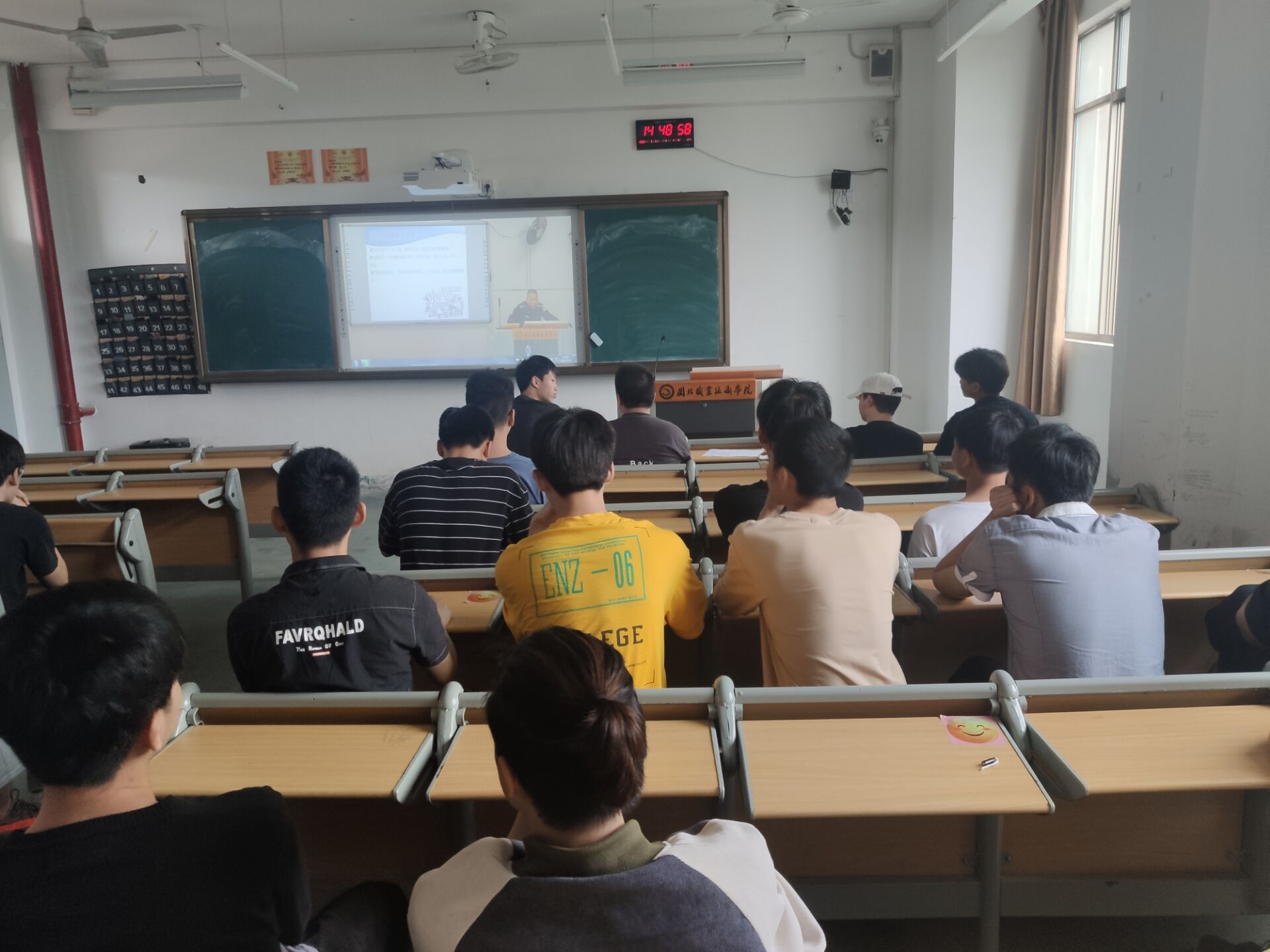 为了提高学生安全防范意识,切实保障广大同学财产安全,维护校园安全环境。3月31日学院安全保卫部门邀请夏道派出所甘俊雄同志为我院学生开展《校园防诈骗安全讲座》,我系部分学生在教学楼201-207教室收看讲座直播。
