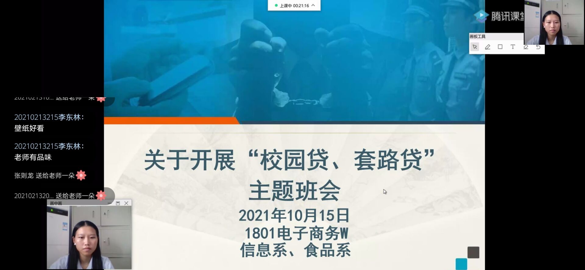 为维护校园安全稳定,加强学生对“校园贷、套路贷”风险防范意识和能力,引导学生树立理性消费观念,10月中旬我系在各班开展防范“校园贷、套路贷”主题教育活动。