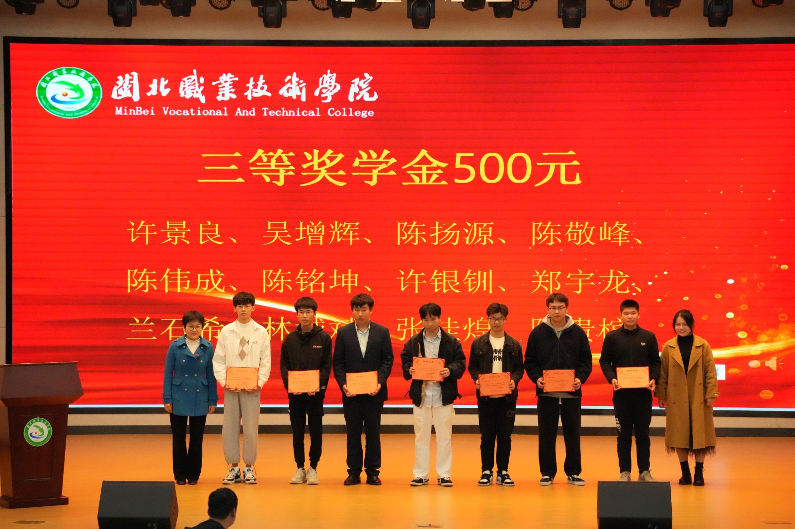校企双方共同为获奖学生颁奖,共颁发一等奖学金4名、二等奖学金8名、三等奖学金12名。