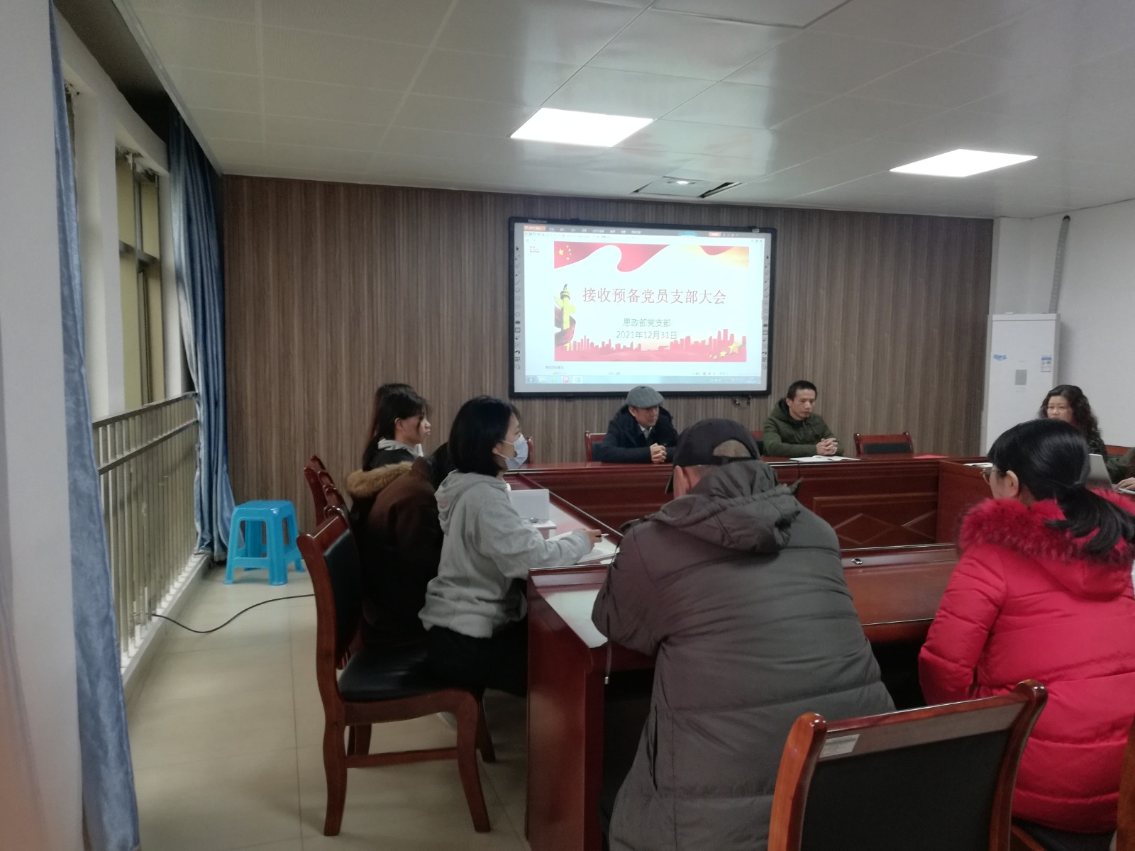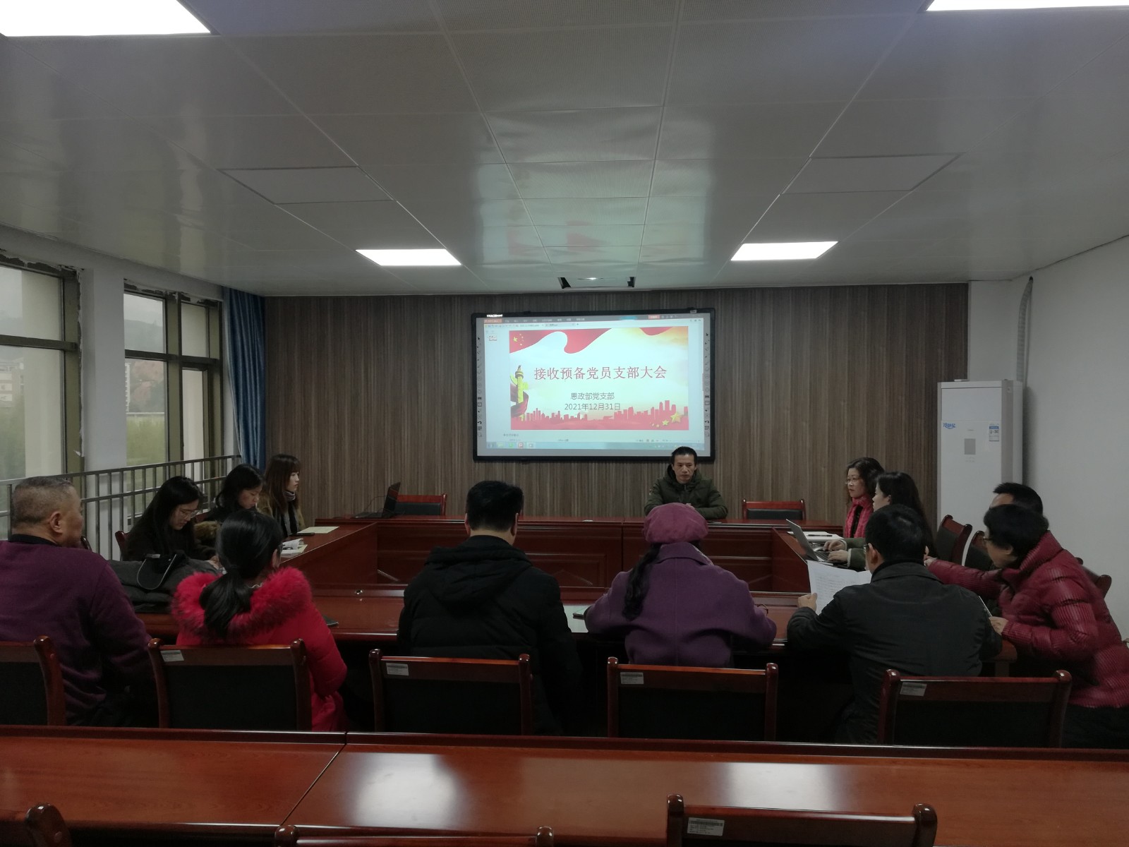 2021年12月31日早上,思政部党支部在行政楼607会议室召开接收预备党员大会,专题讨论吸收詹永珍、康建荣和虞惠明三位同志为中共预备党员问题,支部全体党员参加了此次会议,会议由党支部书记邱海松同志主持。