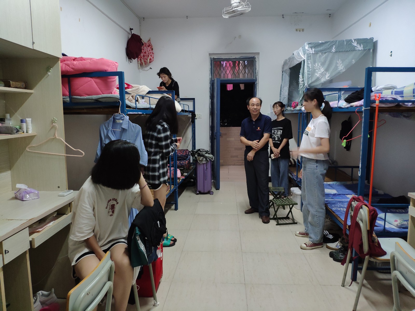 9月9日晚上,我系学生科全体成员在系党总支常务副书记郑启阶的带领下走访了2019级新生。