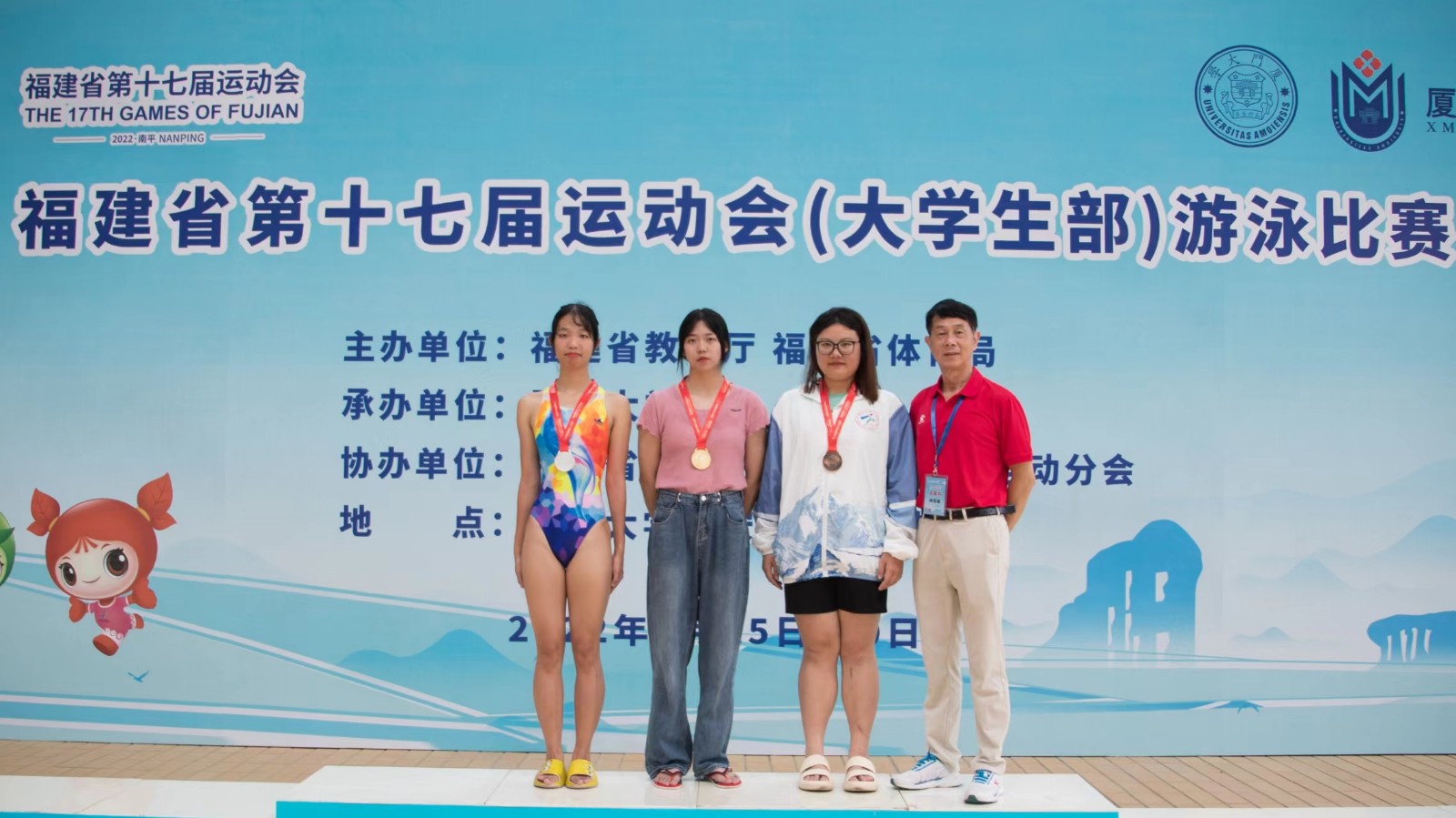 在经过紧张刺激的角逐,吴青霞同学于7月29日上午在女子丙组50米仰泳决赛中勇夺金牌,并在30日上午,在女子丙组50米蝶泳决赛中再传喜讯,以32秒24的优异成绩斩获蝶泳冠军。这也是其个人在本届省运会中,获得的第二枚金牌。