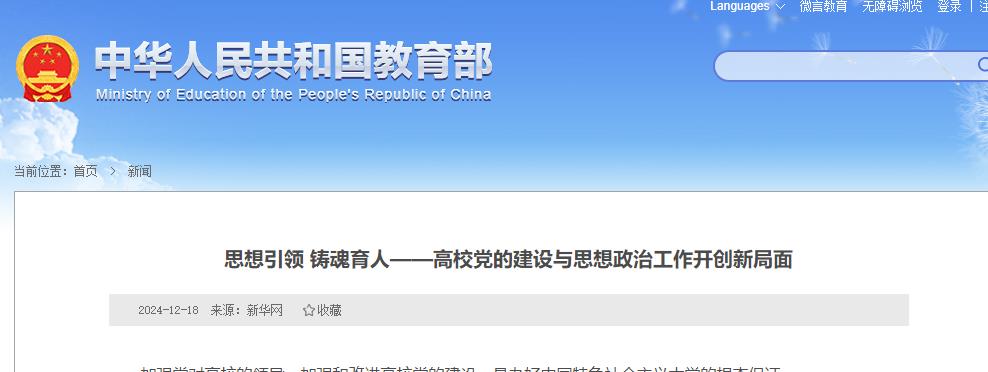 新华社文章:思想引领 铸魂育人——高校党的建设与思想政治工作开创新局面