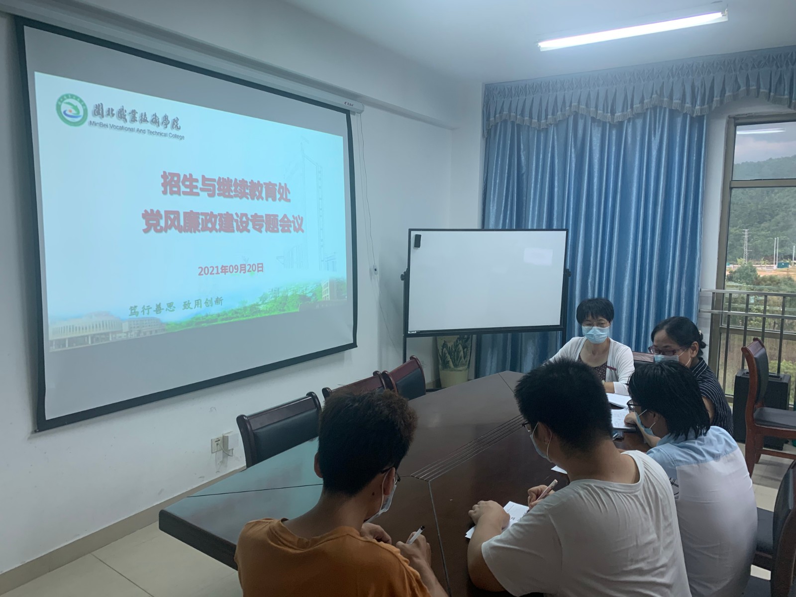中秋、国庆两节将至,为确保文明廉洁过节,9月20日下午,招生与继续教育处在行政楼401室召开党风廉政建设专题工作会议。詹永珍处长主持会议,学院挂点招生与继续教育处的纪委委员、教育系张完英主任到会指导工作。
